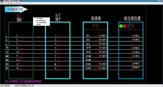 該系統(tǒng)可設(shè)計(jì)、繪制出規(guī)范的電纜徑路圖,并對完成的電纜徑路圖進(jìn)行自動識別,如各條主電纜的徑路結(jié)構(gòu)、箱盒類型、連接設(shè)備的